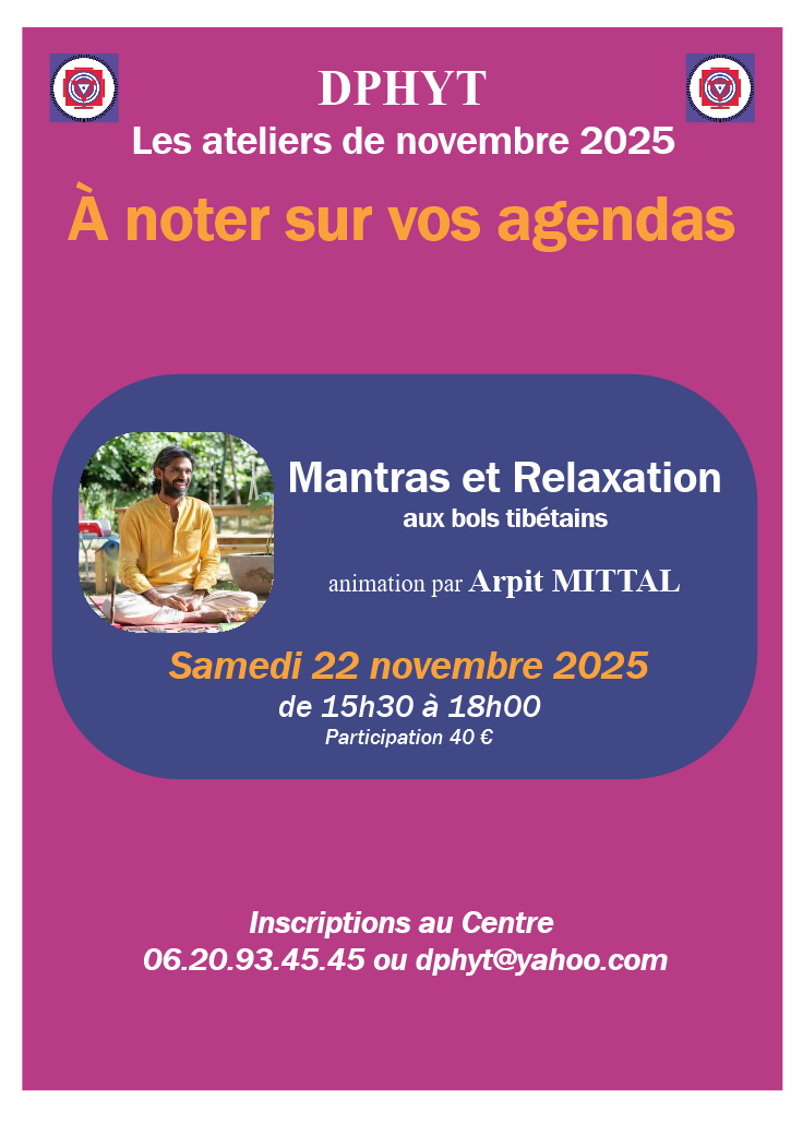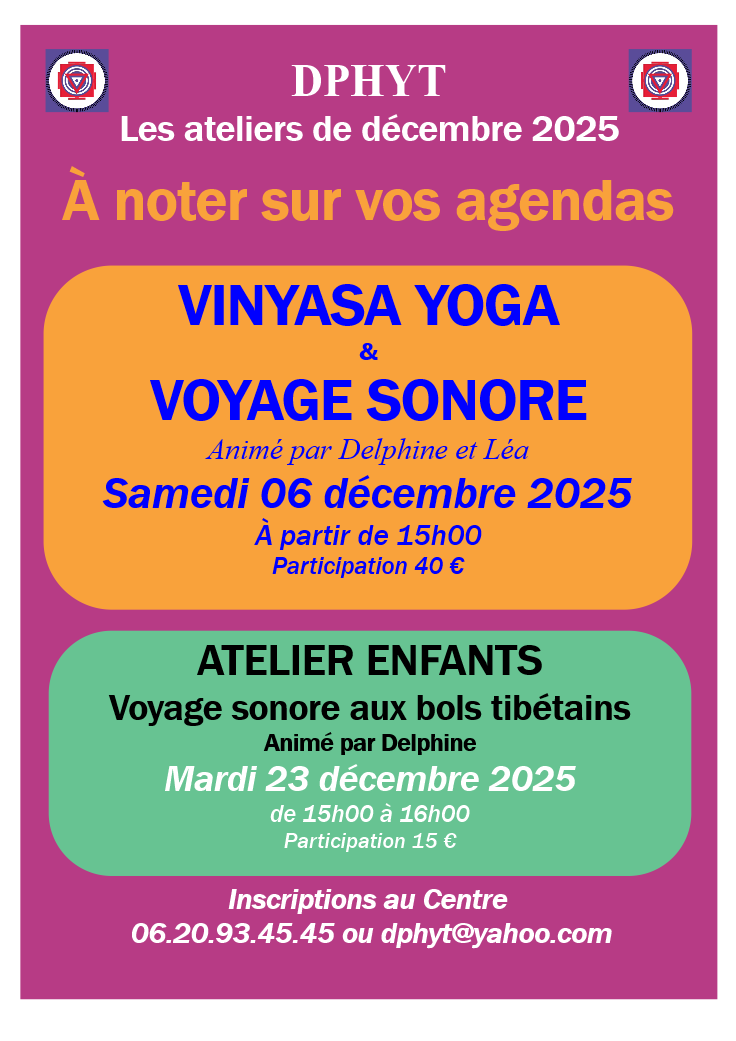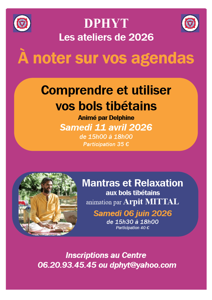Les ateliers sont l’occasion d’approfondir la pratique en s’attardant sur des thématiques liées au Hatha Yoga traditionnel telles que l’équilibre, le lâcher prise, l’axe vertébral, le pranayama, les mantras, la méditation, etc. On aborde les techniques sur un temps plus long, journée ou demi-journée, avec des postures des souffles et des concentrations liés au thème de l’atelier ainsi qu’une partie théorique qui permet de mieux comprendre le sujet.